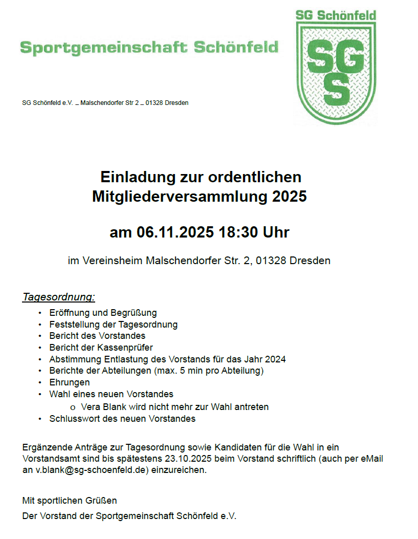 Die SG Schönfeld e.V. steht für Werte wie Fairness, Teamgeist und Respekt – und distanziert sich klar von einer am 18. Januar 2025 aufgelösten privaten Feier auf ihrer Sportanlage, bei der verfassungsfeindliche Inhalte verbreitet wurden. Der Verein wird künftig keine Vermietungen an Nichtmitglieder mehr vornehmen und prüft weitere Maßnahmen.